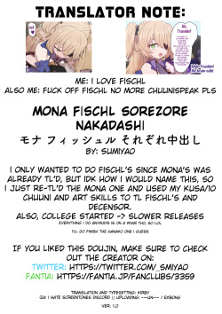 [Sumiyao] Mona Fischl Sorezore Nakadashi (Genshin Impact) [English] [Decensored]